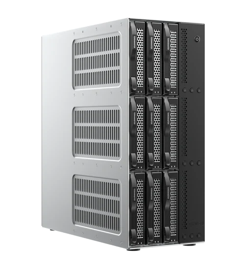 The D9-320 HDD storage enclosure can support up to 9 x 3.5" and 2.5" SATA HDD, as well as 2.5" SATA SSD, with a maximum capacity of 30TB per drive, providing users with up to 270TB (30TB x 9) of storage space. Note that the D9-320 does not support arrays and only works with individual disks.
